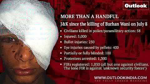 Inside the ophthalmology ward of Srinagar's SMHS Hospital, the air hangs thick with the odour of disinfectant, defiance, and despair. As I glance through his case sheet, 17-year-old Suhail Ahmed Mir, probably mistaking me for a doctor, half rises from his bed. On hearing that his account is going to print, the tall boy with brownish eyes snatches my notebook and tears the page. The smile with which he had greeted me disappears. With a voice that is a mix of pain and rage, he shouts, "Who will get my sight back? Can you?" Suhail is a pellet victim and belongs to south Kashmir, the epicentre of the ongoing agitation in the Valley, which was sparked by the killing of iconic militant commander Burhan Wani on July 8.