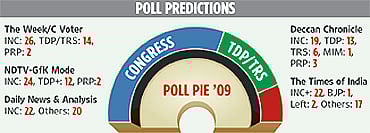 However, in Telangana region, with 119 assembly and 17 Lok Sabha seats, the grand alliance appears to be emerging stronger. "Our alliance is expected to wrap up a major share of seats in the region on the basis of its commitment to the people of Telangana," says senior TDP leader M.V. Mysoora Reddy. "We’ll surely win between 60 and 70 seats here." The Congress admits it is on a sticky wicket here. "Telangana is a little tough, but we are banking on winnable candidates," says APCC spokesperson Kamlakkar Rao. Despite UPA chairperson Sonia Gandhi’s assurance of giving "top priority" to Telangana, there is little unanimity on the issue among the state leaders. "There’s still that element of doubt about Telangana, as leaders in the ruling party seem divided on the issue," says Dr Kolan Ram.