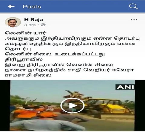 Hours after Tamil Nadu BJP leader H Raja and BJYM vice-president SG Suryah threatened to raze the statues of Periyar, the founder of Dravidian movement, across the state, a group of men vandalised a Periyar statue at a municipal corporation office in Tamil Nadu's Vellore on Tuesday evening.