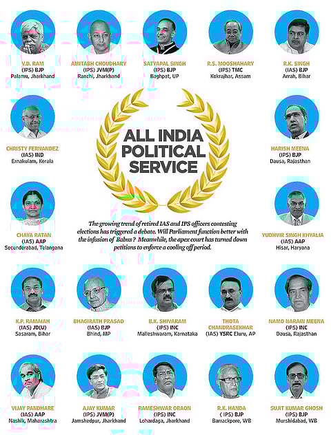 The growing trend of retired IAS and IPS officers contesting elections has triggered a debate. Will Parliament function better with the infusion of Babus? Meanwhile, the apex court has turned down petitions to enforce a cooling off period.