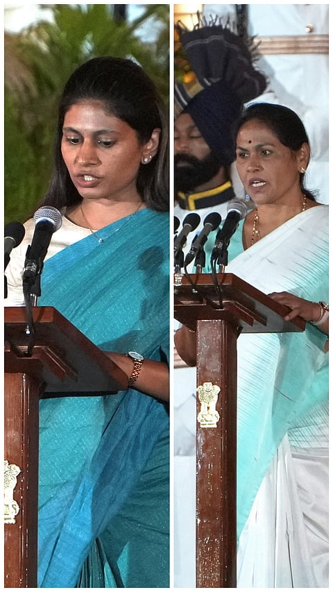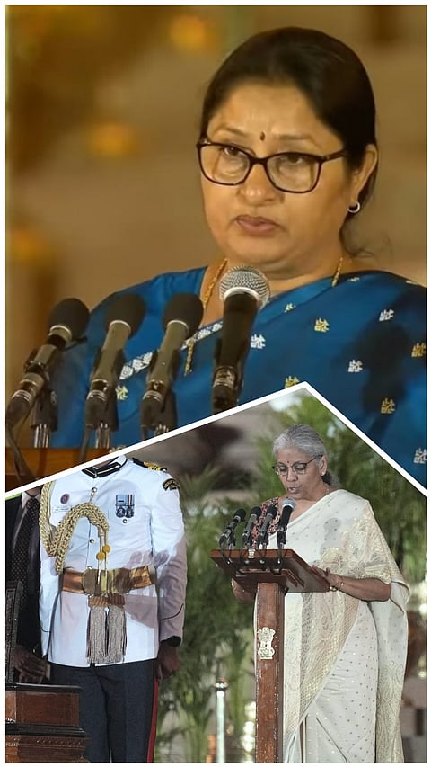 Seven women, including two in the Cabinet role, were inducted into the new council of ministers in the 18th Lok Sabha. Nirmala Sitharaman (bottom) and BJP MP Annpurna Devi (top) have been inducted in the Cabinet
