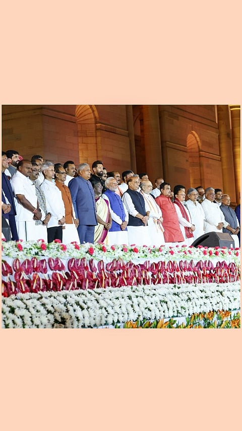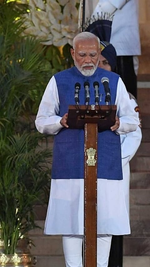 Narendra Modi was sworn in as Prime Minister at the Rashtrapati Bhavan in Delhi on Sunday, becoming only the second PM after Jawaharlal Nehru to secure a third straight term