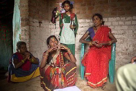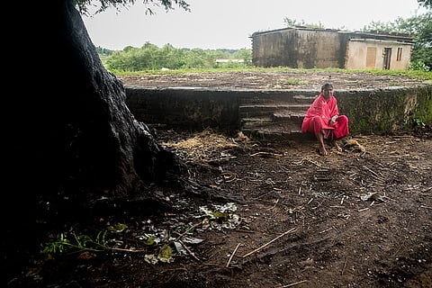 A women waits in anticipation at the exact point where PM Modi held his Man Ki Baat program promising the village a handicraft market.