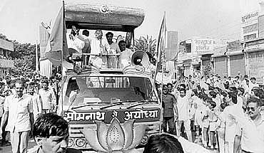 The BJP's use of Ram, by contrast, has been essentially political. The Ramjanmabhoomi campaign was initially described as purely religious, but after Advani's arrest in Bihar during his rath yatra, he described himself as a "humble" political worker who left religion to the religious leaders. By this token, the campaign was not religious, but a national movement. Ram was not just a Hindu god, but a national hero. Unfortunately, the BJP's vision was exclusive, not inclusive, pitting Hindus against Muslims. "As a result," says Dwivedi, "culture was politicised; the distinction between religion and culture was obliterated, and the universality of culture actually started shrinking and religious communities began to distance themselves from essentially cultural events." So, ironically, Muslim attendance at Ramlilas began to fall since the '90s.