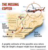 Singh, who had taken off from Hyderabad on August 3 at about 3 pm, had four other people with him—co-pilot Rajesh Gaur and engineers Santosh Kumar and Ashwini Singh. The chopper was to refuel at Jagdalpur—the headquarters of Bastar district. However, it never reached its destination. The last radio contact was about half-an-hour after take-off.
