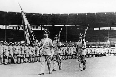 Military parade for the national festival in Bombay, India in August 1947