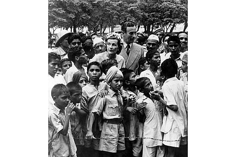 Lord Louis Mountbatten (1900 - 1979) and Lady Edwina Mountbatten (1901 - 1960) surrounded by children in New Delhi, at the time of Independence.