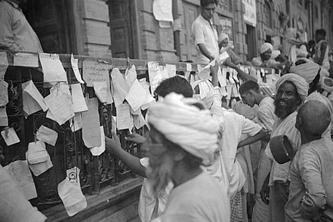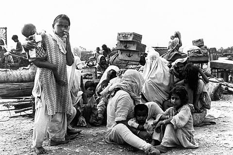 Refugee family in a camp after the partition of India and Pakistan, in 1947 in Pakistan