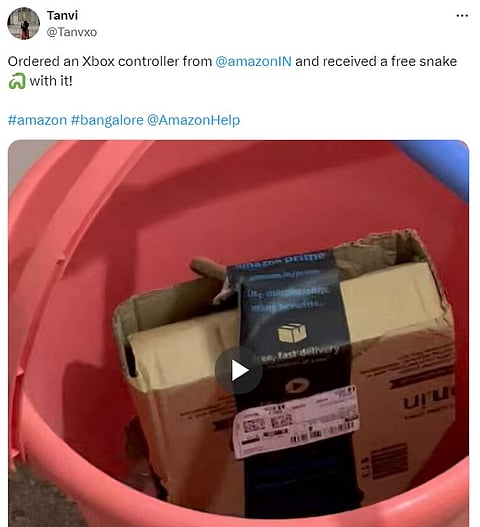 "We ordered an Xbox controller 2 days ago from Amazon and received a live snake in the package. The package was directly handed over to us by the delivery partner (not left outside). We live on Sarjapur road and captured the entire incident on camera, plus we have eyewitnesses to the same," India Today quoted the customer as saying.