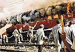 FEBRUARY 27: Coaches S5 and S6 of Sabarmati Express set on fire at Godhrakilling 57 ram-sevaks, including many women and children