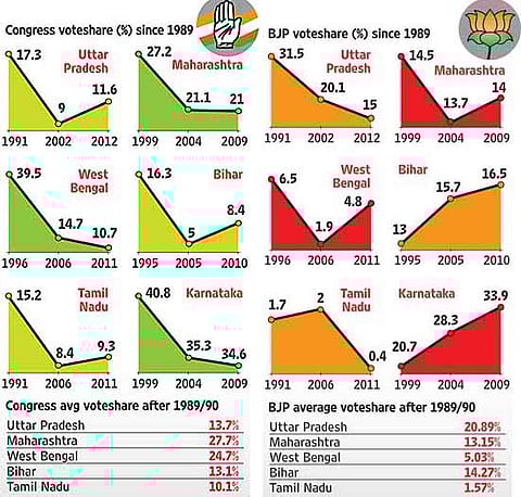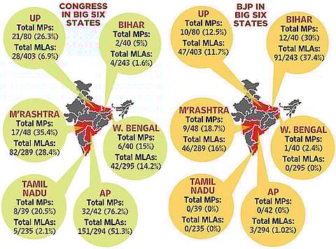 Those reports cannot be good. The party may have displayed skills in arranging surplus votes of elected representatives for the presidential polls, but is having no luck with the ordinary voter. After the debacle in the Andhra bypolls, there was another dismal performance in the UP local body elections. The internal assessments give this picture—falling stock in Congress-ruled Rajasthan, no chance in BJP-ruled Madhya Pradesh, close contest in BJP-ruled Chhattisgarh, defeat in BJP-ruled Gujarat, close call in BJP-ruled Himachal Pradesh, poor performance in Congress-NCP ruled Maharashtra. (What happens in UP and Bihar in a national election will, however, be determined by the party leaderships and issues that prevail at the time. For instance, positioning Narendra Modi at a national level will certainly change equations in the heartland.)