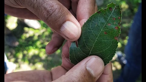 Another farmer, Mohammad Rafiq Rather, said that last year, following expert advice, he had sprayed pesticides on his apple orchard, spread over two kanals. This year, there are no apples on the trees, and the leaves have also dried up.