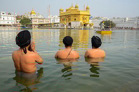 Devotees offer prayers at the Golden Temple on 'Baisakhi' festival, in Amritsar.