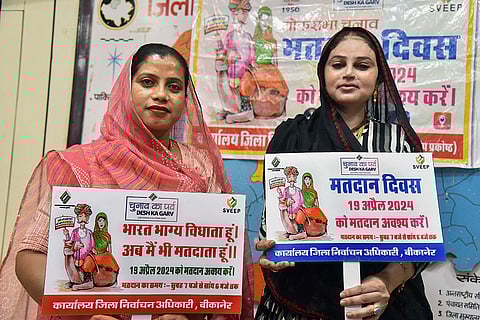 Transgenders take part in a voting awareness campaign ahead of the Lok Sabha elections, in Bikaner.