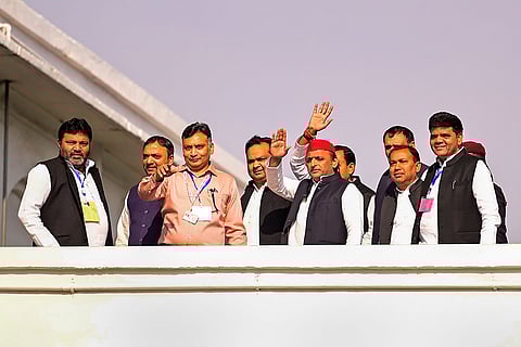 Samajwadi Party chief Akhilesh Yadav after casting his vote for Rajya Sabha elections, in Lucknow.