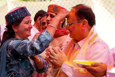 BJP National President JP Nadda during Holi celebrations at his residence, in New Delhi.