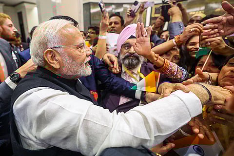 Prime Minister Narendra Modi being welcomed by the Indian community on his arrival in New York.