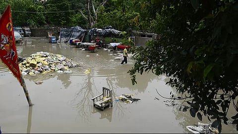 A small tiffin box that has some leftover daal from the morning meal, a couple of clothes wrapped together in gamchas, and a box of earthen toys for her children to play with—that’s everything Anita has in here, at the Mori Gate relief camp in Delhi, where hundreds of people affected by floods have sought shelter. As the water levels recede near their home, hope recedes too. “I went home today to see what is left of it. Nothing. The little that was not drowned has now been stolen. My door’s lock was broken and all my belongings are nowhere to be found,” cries Anita, a young mother to four children.