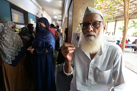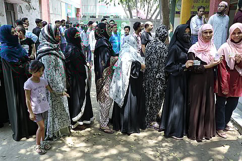 Jaffrabad residents casting their vote at a polling booth in north-East Delhi