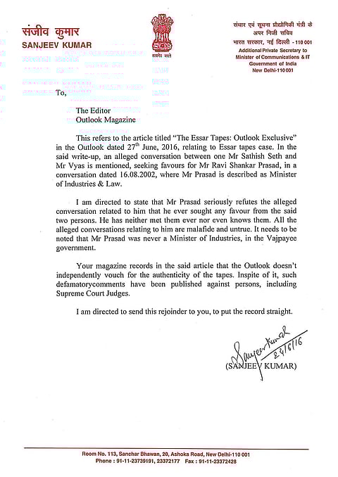 DENIAL: Ravi Shankar Prasad Says He Never Sought Any Favours