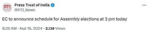 The Election Commission of India (ECI) will announce the schedule for Assembly elections at 3 pm today. Assembly elections are due in Haryana and Maharashtra and also in the Union Territory of Jammu and Kashmir, where the Supreme Court deadline for holding polls ends on September 30.