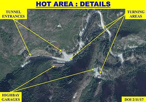 It has single entry and exit road. There are six gates before reaching the entrance of the tunnels. The main gate is solid preventing any ground view inside the facility.