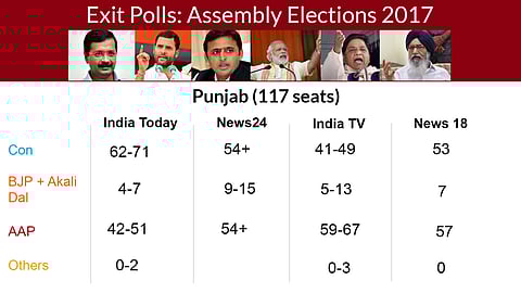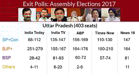 The exit polls on Thursday have said that BJP is likely to form governments in Uttarakhand, Goa and Manipur and may emerge as the single-largest party in Uttar Pradesh in the just-concluded assembly elections while the Congress is likely to rule Punjab. Exit polls also predict that Arvind Kejriwal's Aam Aadmi Party is likely to finish second in Punjab.