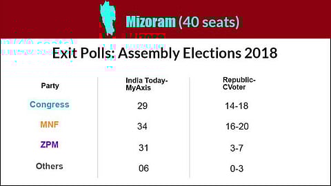 In Mizoram, Congress will be voted out of power, predict exit polls. The exit poll conducted by Republic TV-C Voter shows Congress getting 14-18 seats in the 40-member assembly.