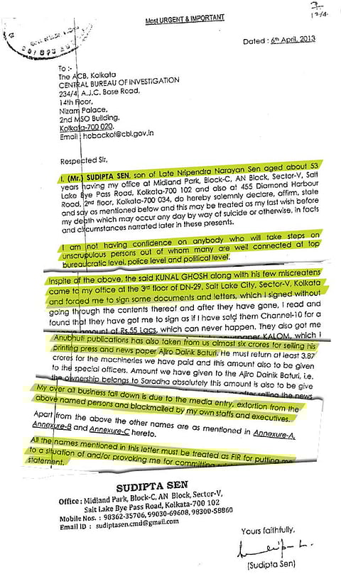 Saradha Group chief Sudipta Sen’s letter to the CBI |