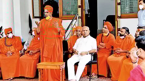 A portrait of the 12th-century reformer-saint Basavanna, adorned with a crown atop a horse, takes a pride of place in most Lingayat households. He is depicted with a sword worn on his left side. The Lingayats venerate him as a deity and express their devotion by singing vachanas—philosophical verses that lay the foundation of Lingayatism.