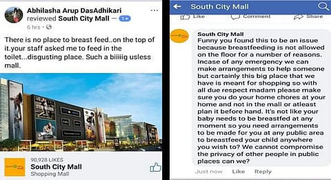A social media executive from the mall replied on her Facebook post saying "Funny you found this to be an issue because breastfeeding is not allowed on the floor for a number of reasons....this big place that we have is meant for shopping. So, with all due respect madam please make sure you do your home chores at your home and not in the mall or at least plan it beforehand."