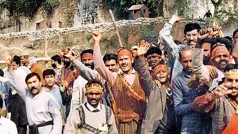 Babri Masjid is demolished, leading to communal violence. FIRs are filed against kar sevaks and leaders including Advani, M M Joshi and Uma Bharti.