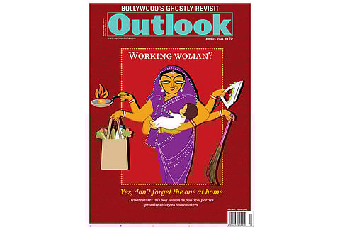Working Woman?: Outlook's April 19, 2021, issue delved into the re-emergence of homemakers as a focal point in electoral pitches, amid political parties promising them salaries in the lead-up to the poll season.