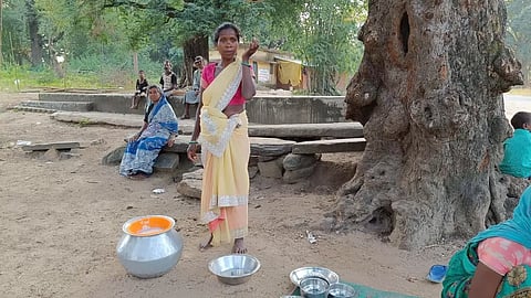 Nanki has been selling Hadia, a local traditional drink, for the last one and a half years to send her youngest child to school. The local market on Friday helps her earn a meagre Rs. 300 for the entire week. Due to financial constraints, the first two sons of Nanki left their studies after class five and the other son after class eight. The youngest son is studying at Khunti. Nanki has to work as a labourer out of the village for several days in a year to arrange Rs. 3,500 for his son’s education. She says that at the time of the demise of Sahdeo, the youngest son was a toddler.