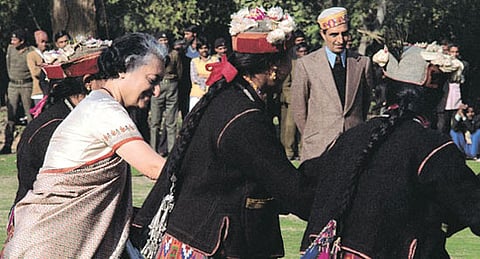 Part of a circle Indira joins folk dancers at a function in Delhi