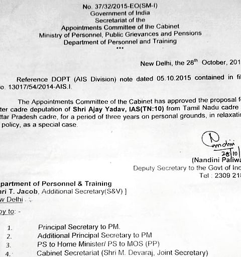 The PM-headed ACC’s order for Ajay Yadav’s inter-cadre deputation
