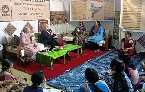 "On my first visit to their headquarters in Ahmedabad in 1995, SEWA's 140,000 members included some of the poorest women in India with the least access to education. Some had lived in purdah until their husbands died, became disabled, or left. Many had struggled day to day to support their families," Clinton wrote in an Instagram post.