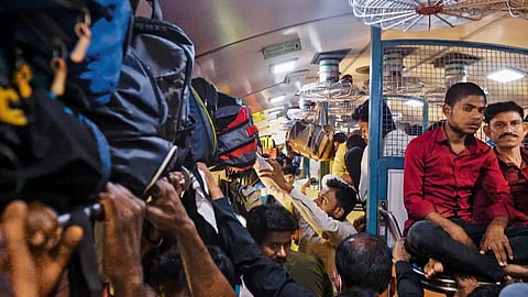 The scene of a flock of sheep transforming into human beings rushing to catch up with the sirens of factories in Charlie Chaplin’s Modern Times is recreated every day in the general and second-class compartments of the trains from Bihar—crammed with migrant workers searching for a space even to squat.
