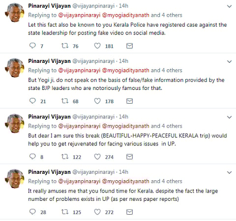 Chief Minister of Kerala Pinarayi Vijayan took to Twitter to rip apart his Uttar Pradesh counterpart Yogi Adityanath and his claims over the state's 'inadequate' healthcare system.