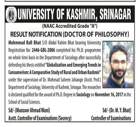 Rafi, a Ph.D in his discipline, was among five militants killed by security personnel at the Badgam area of Shopian, nearly 80km from his house.