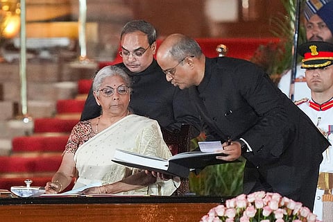 BJP MP Nirmala Sitharaman takes oath as minister during the swearing-in ceremony of new Union government, at Rashtrapati Bhavan in New Delhi