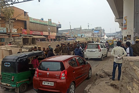 Barricades put up near Singhu border in view of farmers' 'Delhi Chalo March', in Sonipat district.