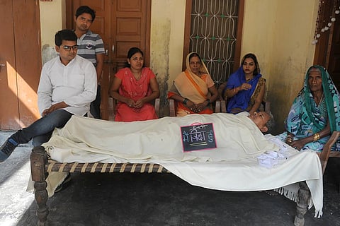 Most have to do with land-grabbing. In Mau, 45 km east of Azamgarh, Lal Bihari is advising 76-year-old Dhiraji Devi, who was declared dead in 1985—without her knowing it for a decade. After her husband, a coalfield worker, died in 1974, Dhiraji went to work in the Samla colliery in Bengal, where she got a job. She would send back money for her children as well as to cultivate her husband’s ancestral land in Makhuni village, Azamgarh district. When she returned in 1995 after retiring, she found herself homeless: her in-laws said she had no share to her name. Her brother-in-law had had her declared dead in the “family register” and her share in the land transferred to her mother-in-law. She filed a criminal case against them—it’s been pending for years. The Mritak Sangh supported her. She sent several memoranda to the chief minister of UP as well as the PM. Both offices intervened. Still, nothing stirred in the mortuary-like silence of officialdom! Dhiraji even threatened self-immolation in front of the UP Vidhan Sabha in 2012. Finally, a district official recorded her as alive in the family register, but her name in the land records was not updated. The in-laws objected, claiming she had married again.