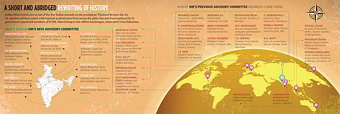 It is the Indian Historical Review, among the few Indian journals which are a part of the prestigious Thomson Reuters list, that is bearing the brunt of these shenanigans. Five of the new ICHR team have been made members of the journal’s editorial board; the remaining 13 have taken over its advisory committee. Historically, committee members have been distinct from council members, to enable objective and independent opinion. The previous 24-member committee comprised illustrious historians like of Romila Thapar, Mushirul Hasan, Irfan Habib, at least 10 reputed academics from foreign universities and others from across the country, the aim being to have rigorous peer review and enable the members to commission promising historians to write on various subjects of interest. Now, says Delhi University professor and former council member B.P. Sahu, “the Review is almost an inhouse journal of the council. With all its members on the editorial board, it is no longer accountable to anyone.”