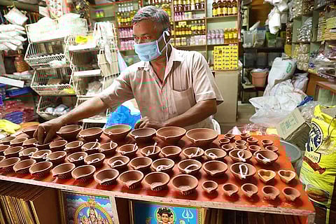 The earthen lamps, along with other 'puja samgari', are also sold near various temples. Those shops also opened on Sunday. Gatherings at the temples and other religious places too are barred.