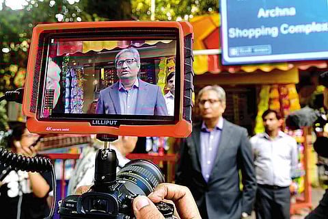 Sitting above news crawlers and tickers, within the confines of the TV screen, Ravish Kumar appears an average man, belying his height and physique. Kumar, 47, is one of the country’s foremost news anchors and hosts NDTV India’s flagship show, Prime Time. His Facebook page alone has over 1.4 million followers. The anchor is loved and reviled with almost equal ferocity. Fan mail and abuse, at times even life threats, fly at him frequently.