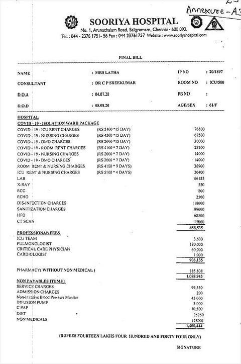 When 61-year-old Latha was admitted in Chennai’s Sooriya Hospital for COVID-19 treatment in July, her family didn’t expect the cost could take away all their savings. She was there for a month, and the hospital raised a bill for Rs 14 lakh. Latha, who had health insurance from Star Health and Allied Insurance Company Limited, asked the company to reimburse the bill. The company didn’t refuse to pay, but asked the hospital to rationalise the treatment cost. Agreeing to pay only Rs 4.4 lakh, Star Health wrote to the hospital, “As per the government order that has been reinforced by the Tamil Nadu government, such exorbitant billing shall be taken to the notice of the government.” The hospital agreed to settle for Rs 4.49 lakh.