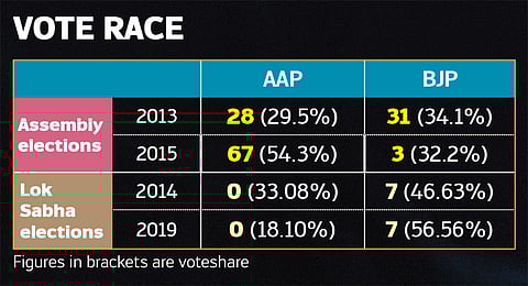 “Kya kaam ke naam par vote padta hai?” Do people vote for performance? This is the simple question Arvind Kejriwal is seeking an answer to—shorn of theory, or hifalutin ideology, a question meant to appeal to the common citizen. Delhi will vote again in early 2020, to get a government that will craft its destiny for the first half of the new decade. Kejriwal, a man who once deigned to loom much larger over India’s political landscape, has limited the horizon of his ambition. He wants only Delhi. There is stiff, and bitter, opposition though. The BJP wants desperately to break its 21-year long jinx and get a shot at power in the national capital. For the Congress, which ruled Delhi for 15 years under Sheila Dikshit and justly claims to have begun its transformation, it’s a fight for relevance in a purana qila. And yet, this is about much more than Delhi. For, this is no ordinary three-sided electoral fight.