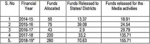 The Centre has spent a total of Rs 364 crore since 2014 in advertising the Beti Bachao Beti Padhao campaign, one of Prime Minister Narendra Modi's pet projects that aims to improve the child sex ratio, Minister of State for Women and Child Development Virendra Kumar has said in a written reply in the Lok Sabha.