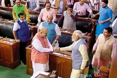 No bugles pierced the silence in Srinagar perhaps, but the symbolism carried all the awe and solemnity of a world-historic transfer of power. A little after 7 pm on August 6, 2019, when Parliament passed the resolution that turned Article 370 into a dead letter, the office of Jammu and Kashmir Governor Satya Pal Malik quietly removed the red state flag from his table, leaving the tricolour as the lone sentinel. It will be the same everywhere else in the two newly anointed Union territories—Jammu and Kashmir (a physically truncated, and staturally diminished version of the state that adorned geography textbooks) and Ladakh. If things go according to one plan—if the ground can be kept calm—a grander, more triumphal and full-size re-enactment may be expected on August 15, with Union home minister Amit Shah doing the honours right there on Lal Chowk.